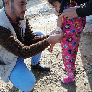 Assessment of nutrition status for children by measuring mid upper arm cercumferance (MUAC).